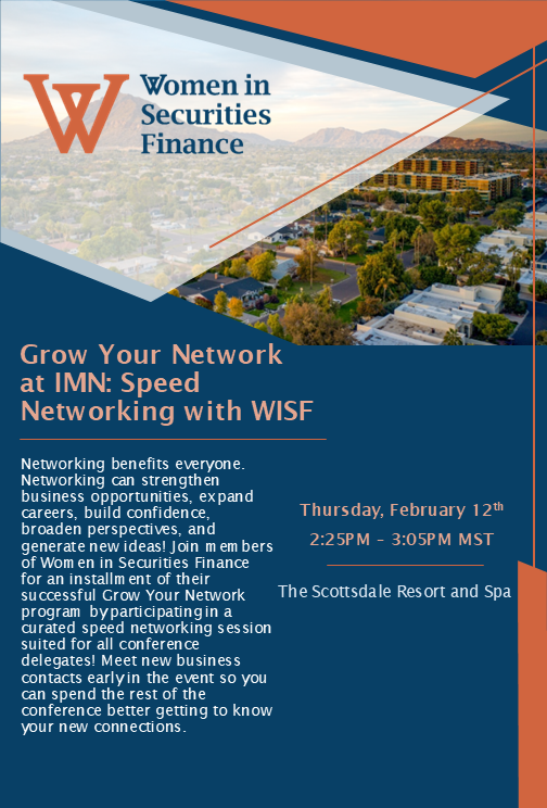 Networking benefits everyone. Networking can strengthen business opportunities, expand careers, build confidence, broaden perspectives, and generate new ideas! Join members of Women in Securities Finance for an installment of their successful Grow Your Network program by participating in a curated speed networking session suited for all conference delegates! Meet new business contacts early in the event so you can spend the rest of the conference better getting to know your new connections.