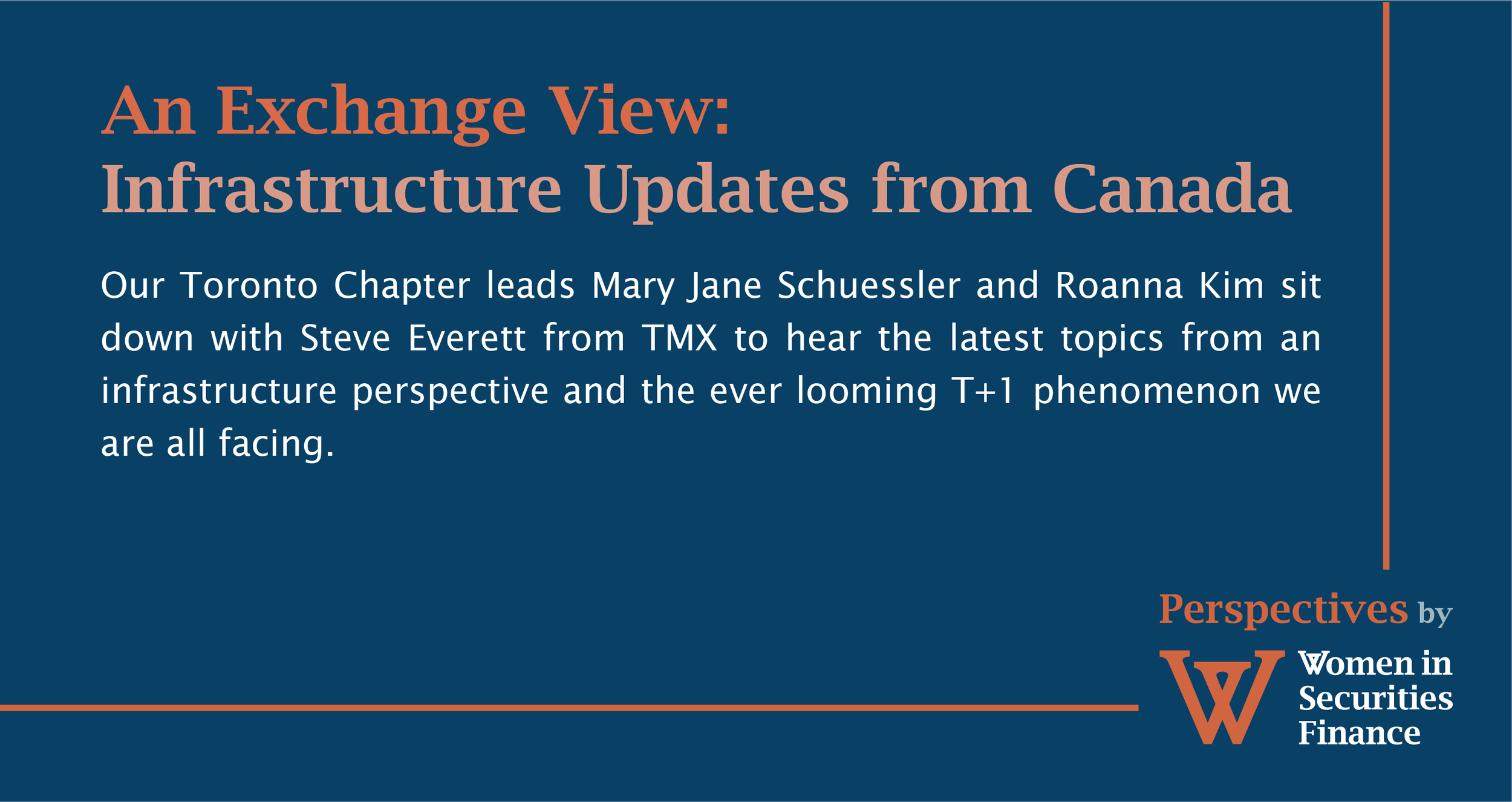 Our Toronto Chapter leads Mary Jane Schuessler and Roanna Kim sit down with Steve Everett from TMX to hear the latest topics from an infrastructure perspective and the ever looming T+1 phenomenon we are all facing.
